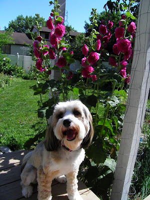 I couldn't decide which picture of Tibby with the hollyhocks I liked better.